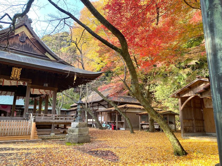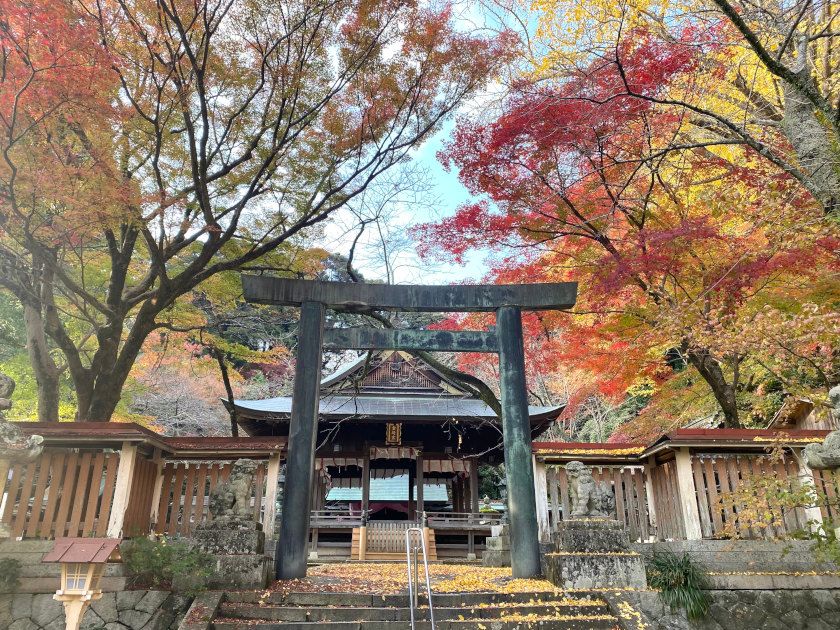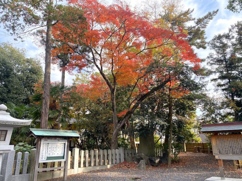 【紅葉状況】鳥居横、境内のモミジがともに見ごろをむかえています。