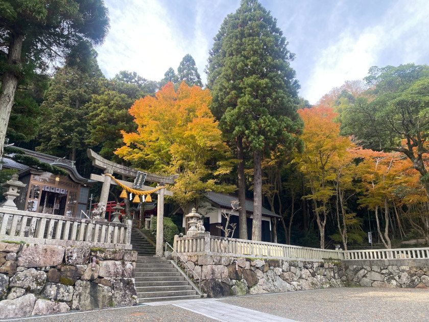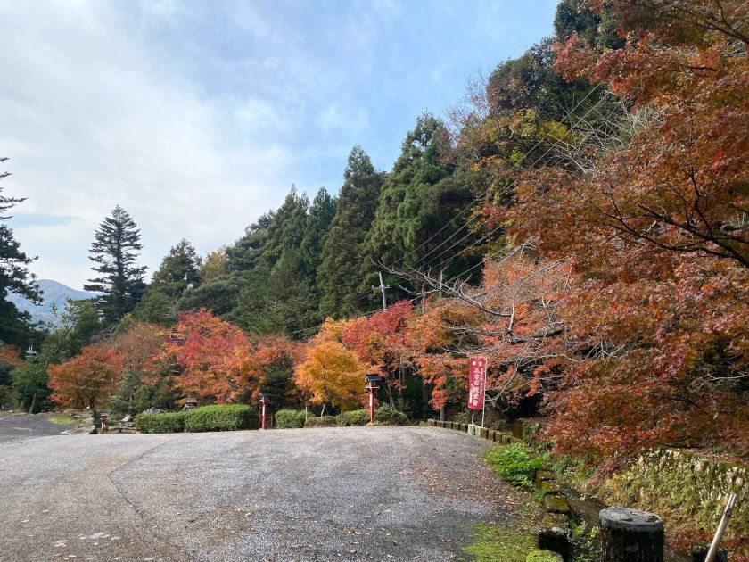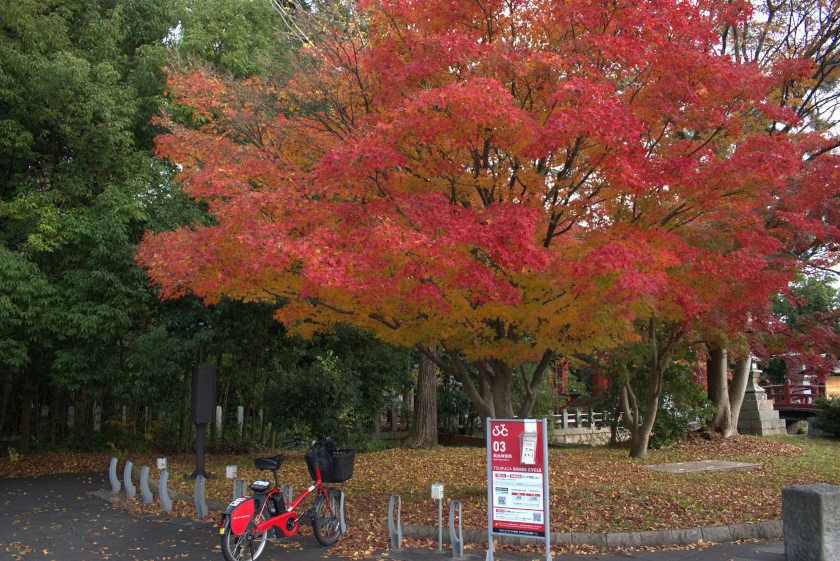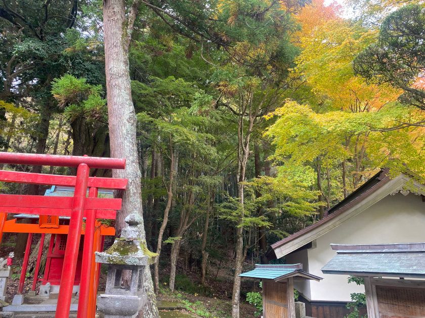 【紅葉状況】鳥居をくぐって右側奥のモミジは、先週より赤い色が付きはじめましたが、今週土日が見ごろでしょうか。