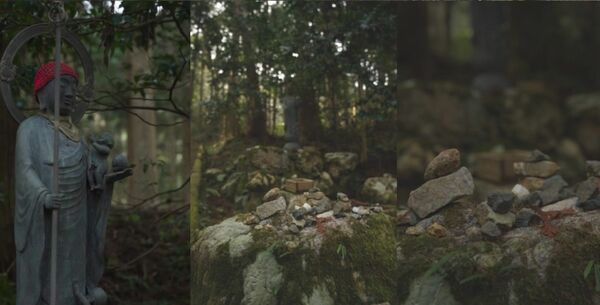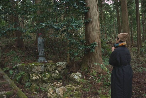 参道をさらに進むと、水を汲みに訪れる人々を長年見守ってきた地蔵尊が佇んでいます。地蔵は古くから、浄化や守護と結びつく湧水や滝のそばに祀られることが多く、水を頼りに生きる人々や旅人、子どもたちを守る存在として信仰されてきました。