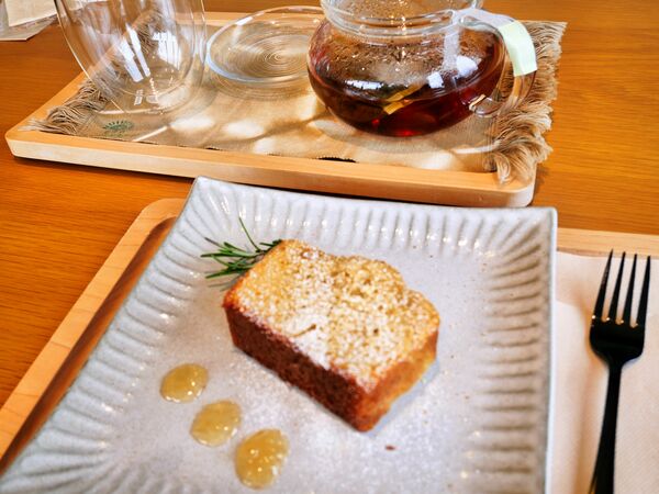 ドリンクと共に、スイーツもオリジナルティの高いものでした。季節商品である「柚子のパウンドケーキ」。青葉山の麓で採れた柚子の皮と果肉をジャムにし、生地に練り込んでいます。柚子の豊かな風味が記憶に残る逸品ですね。柚子を利用することは、獣害対策のひとつなのだそう。大量に採れる柚子を放置しておくと、獣の餌になってしまい獣害が発生するとのこと。地域社会のサステナビリティを考えた取り組みがなされています。