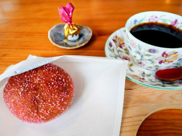表面はカリカリ、中身はモッチリふんわりの絶妙食感。白あんにマスカットピューレを練り込み、風味豊かな仕上がり。お餅も入って、揚げパンの概念が覆ります。取材中も、揚げパン目当てのお客様が続いて来られていましたが、その気持ちがよく分かりますね。