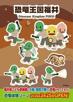 昨年開催された大阪・関西万博において、関西パビリオンの福井県ゾーンに展示された恐竜のモニュメントや恐竜化石のバーチャル発掘体験、4面シアターでのVR体験がこども家族館にパワーアップして帰ってきます!