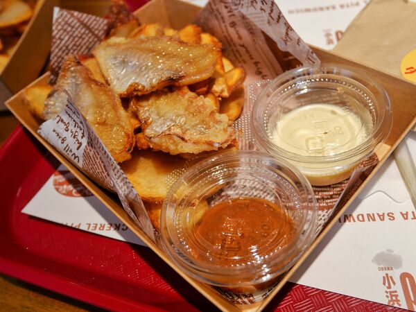 「SAKURAフィッシュ&チップス」は、春季限定商品。“フィッシュ”は、これまた小浜らしさ漂うさくら色の小鯛を使用。醤油干しにしたものを、揚げています。皮のさくりとした食感と、身のふわりとした柔らかさ。それに香ばしさが良いですね。オリジナルのマヨソースと、自家製カポナータの2種類のディップは、どちらも魅力のソース。自家製ポテトとの相性もよく、車でなければ絶対ビールでしょ‼という逸品です。ああ、これで花見したい。定番の「フィッシュ&チップス」は具材が小鯛ではなく鯖となり、こちらは通年食べることができます。