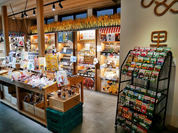 続いて「里」エリアに移動します。こちらのコーナーでは、地元の果物や野菜、お米などが並んでいます。また創業300年の老舗が造るお酢、小浜や若狭町などの地酒、その他ご当地商品なども、このエリアに置かれています。