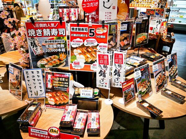 そして鯖街道といえば、やはり「鯖寿し」を忘れてはいけません。空弁で人気を博す若廣のほか、各社の鯖寿しが販売されています。入荷して間もなく売切れてしまう商品もあり、すべてはタイミング次第。お昼には地元のお弁当類も並びますが、こちらも人気があって常に購入できるとは限りません。後悔したくなかったら、即ゲットが鉄則です。