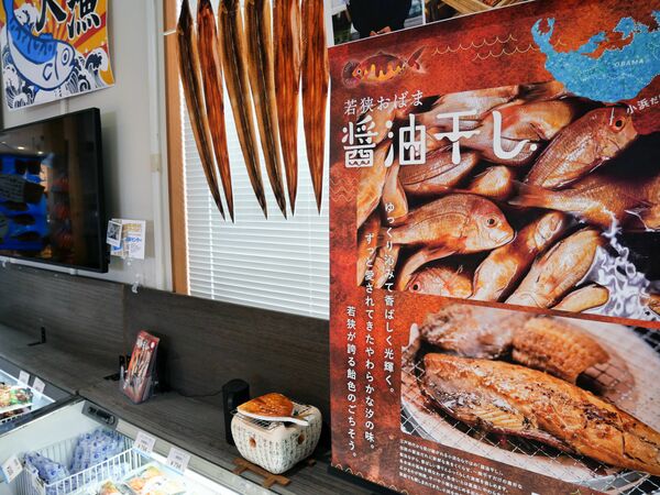 まずは物販コーナーから見ていきましょう。店内は「海」「里」「まち」の3つのエリアに分類されています。これは小浜観光の見どころとリンクさせたようですね。小浜観光の「海」は、新鮮な海産物と美しい海岸や港風景。「里」は、多数ある寺社仏閣や鯖街道。「まち」は、小浜西組など旧き良き町並みに通じているようです。