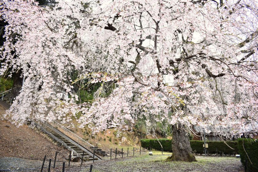 国道沿い大駐車場から参道~本堂にかけて、観音川沿いにしだれ桜やソメイヨシノがあります。遠くからみても近くからもみても綺麗です。