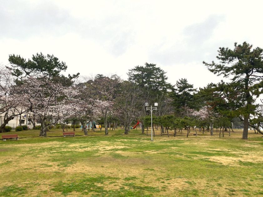 高浜町内浦地区にある五色山公園の桜です。展望台の桜は五分咲きくらいですが、公園の桜はほぼ満開でした。