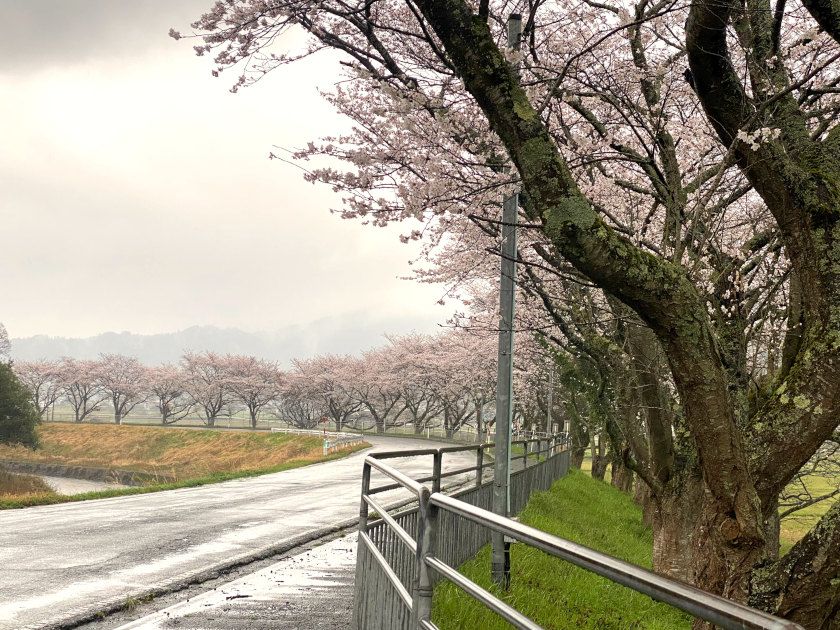 旧大飯地域のシンボルとも言える佐分利街道の桜並木。どの桜の木も、もう8割ほど咲いています。