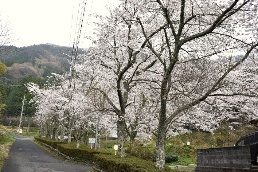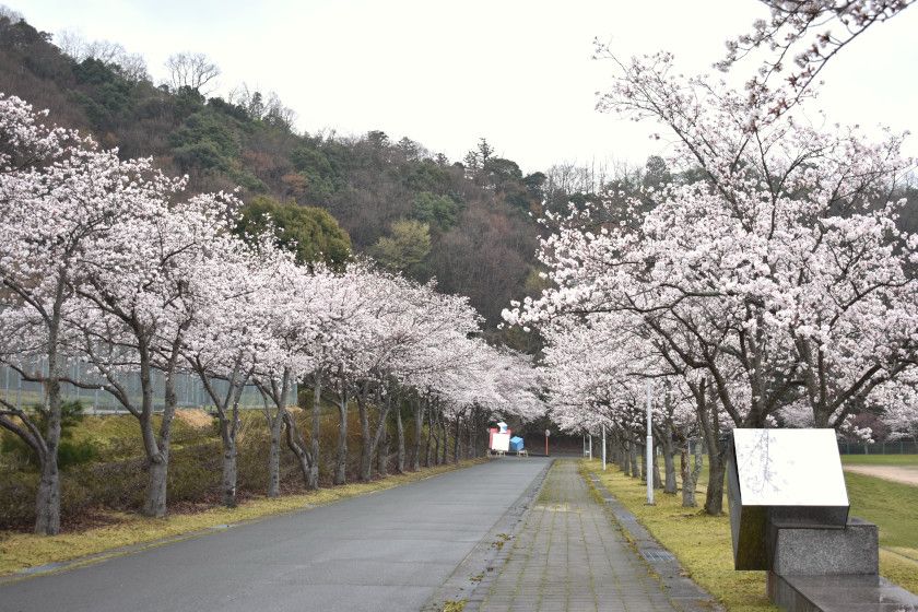 国道27号線より国吉城歴史資料館に向かう桜並木です。すでに満開です。