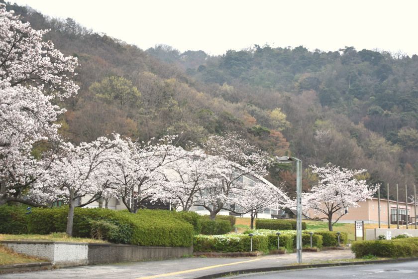 入学する学生さんをお出迎えするように、約1.3キロに及ぶ桜街道が満開です。