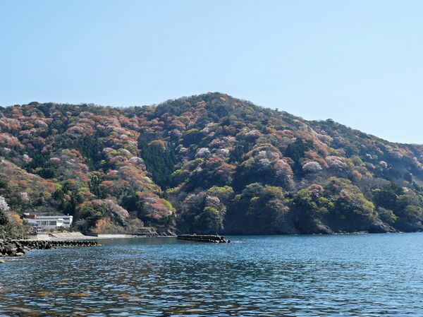 昼食後、雨の心配はなかったが、空は曇天へと変化。慌てて、若狭町まで移動する。目当ては神子の山桜。神子の港に車を停め、撮影開始。天気は回復せず、画像的には少々残念な結果となった。晴天なら明らかに迫力が違うだろう。海の透明度が高く、感動的である。民宿が多いので、今度は宿泊して静かなる漁村の魅力を堪能したい。