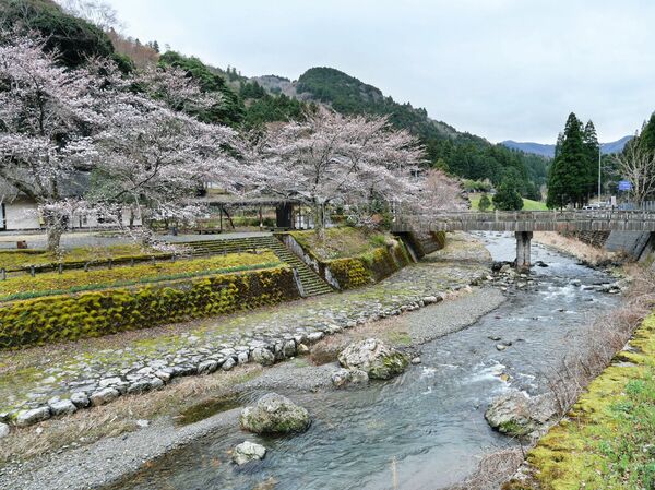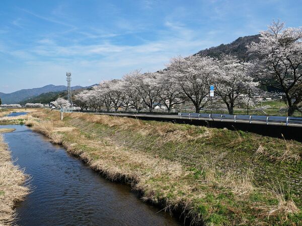 午後は、おおい町の取材へ。国道27号線を東へ進み、うみんぴあ大飯から県道1号線に入る。佐分利川沿いは随所に桜並木があって、見応えあり。しかしながら、駐車して撮影できるポイントは限られていて、どちらかといえばドライブ風景を楽しむところといえる。