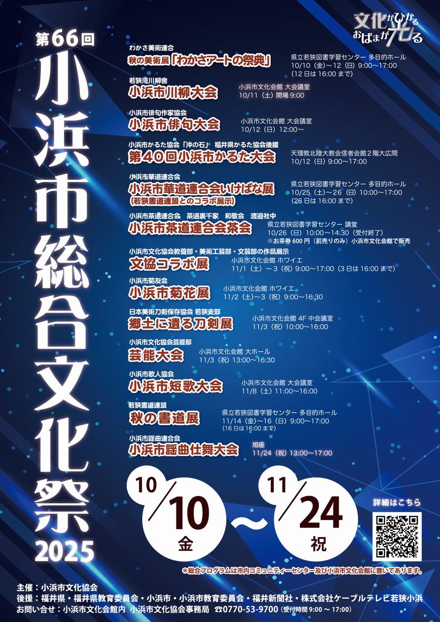 日ごろ、文化活動において活躍されている文化協会所属団体の成果を披露する「小浜市総合文化祭」を市内各所で開催されます。