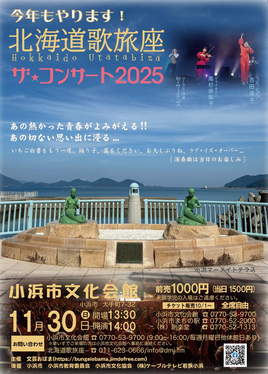 誰もが口ずさんだ、昭和のあの歌 「懐かしいフォークソング」「昭和のヒット曲」 など、全国市町村公演を実施している「北海道歌旅座」によるコンサートを小浜で開催されます。