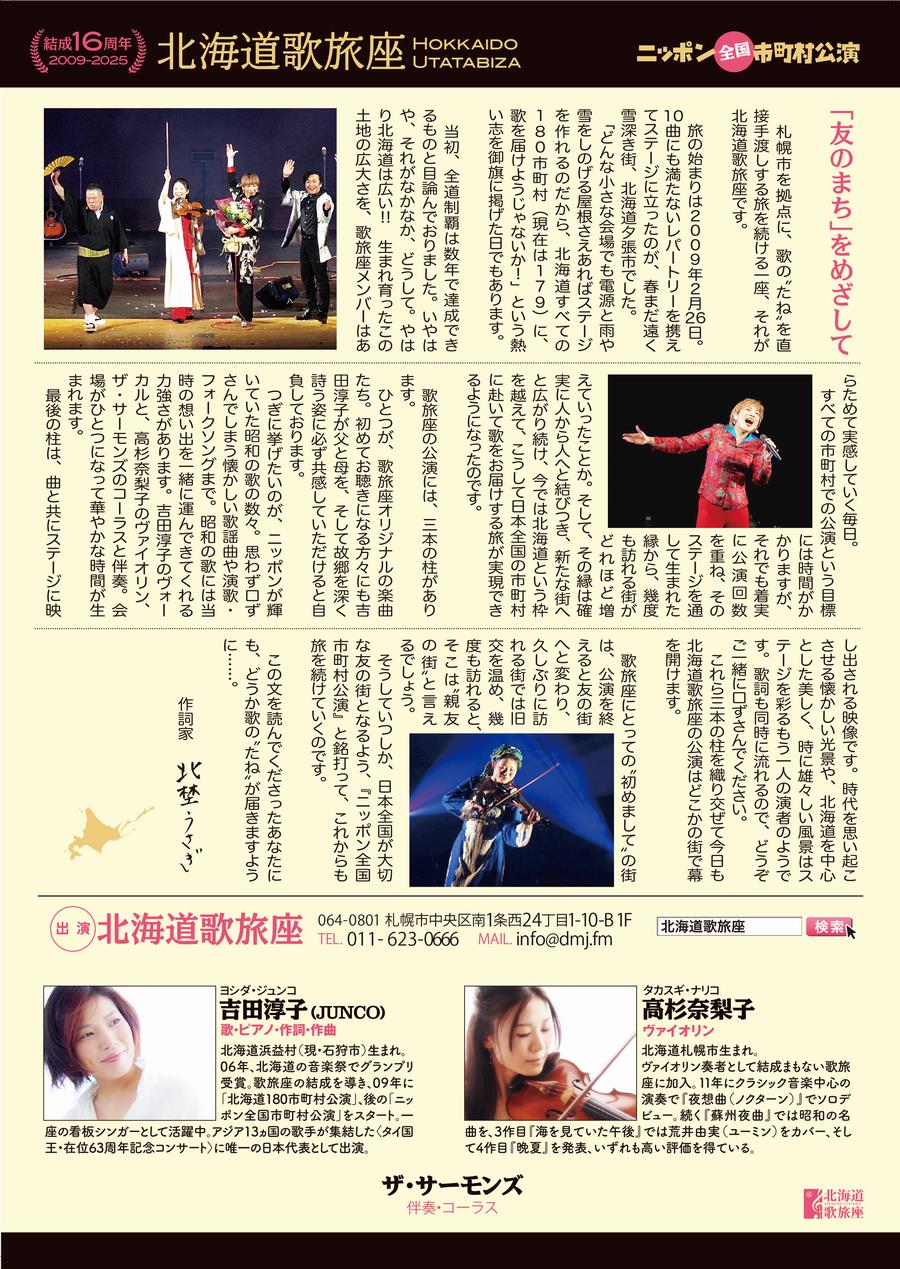 昨年につづき、たくさんのご要望をいただいた「北海道歌旅座 ザ☆コンサート」 を開催されます。