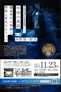① 記念講演会「中世の高浜~鎌倉時代の青郷と御家人青氏をめぐって~」