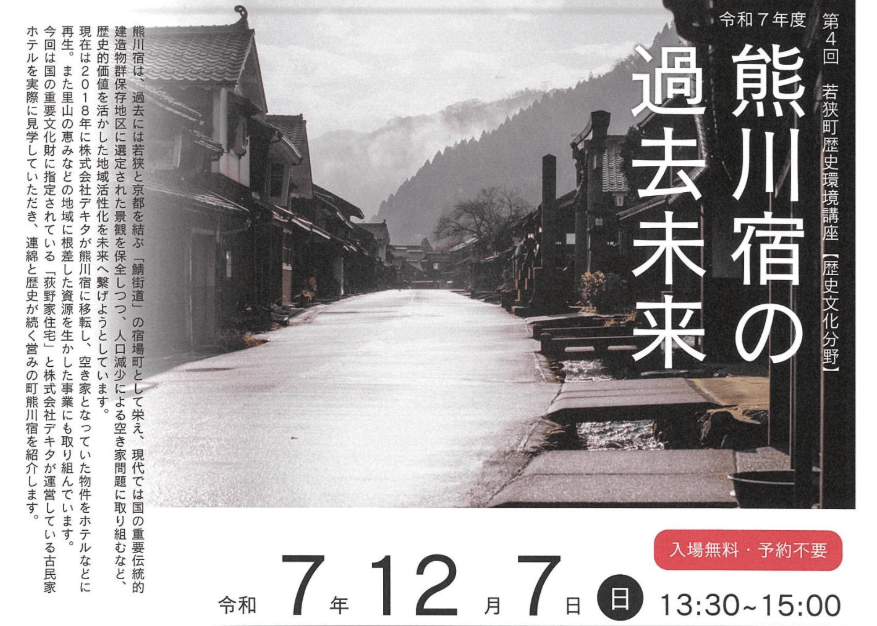 若狭町歴史環境講座【歴史文化分野】 令和7年度第4回 熊川宿の過去未来