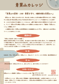 | お問い合わせ先 | 青葉山ハーバルビレッジ TEL:0770-50-9012 info@aoba-san.com |