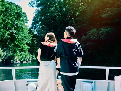 湖ごとに色合いや水質が異なる三方五湖の表情や、季節ごとに移ろう山並み、木々が生い茂る浦見川を、約50分かけてゆったりと遊覧します。